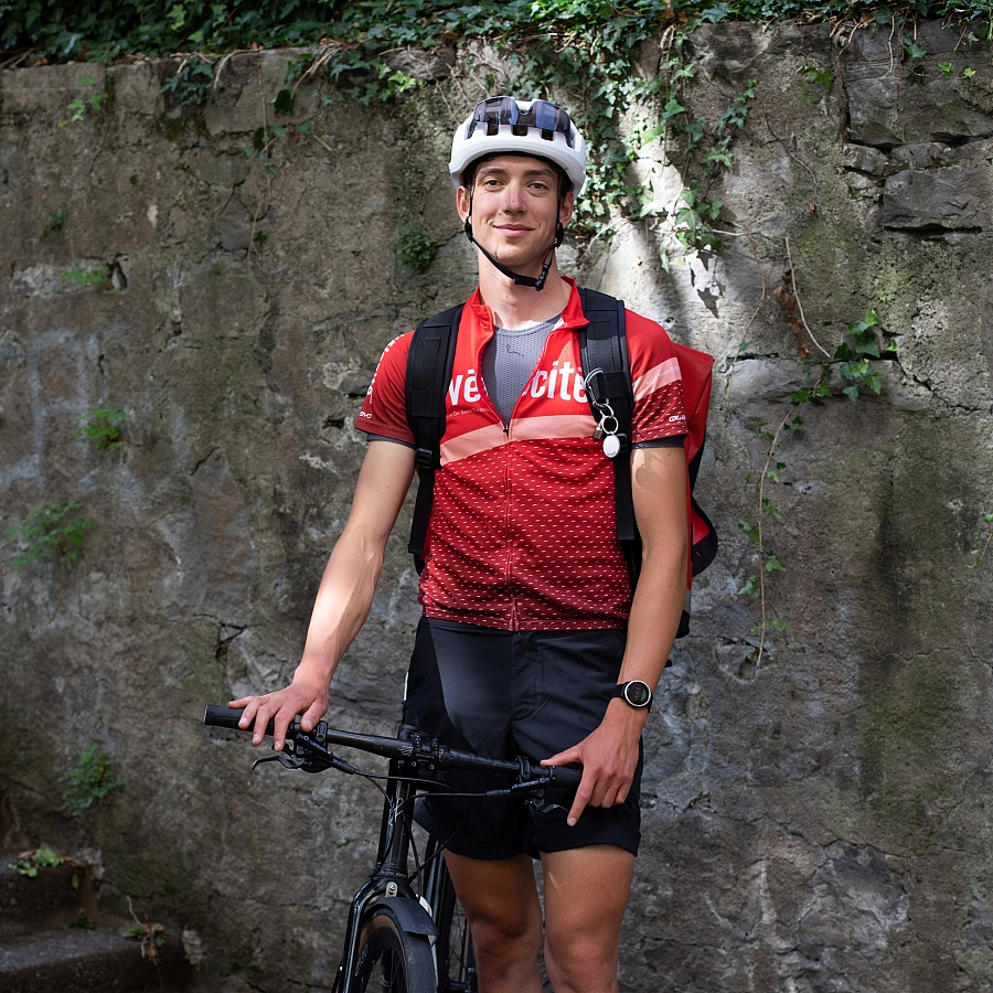 Marin de Saint-Exupéry est né à Paris né en 1996. Venu en Suisse pour apprendre le design industriel à l’ECAL, il s’est retrouvé après son Bachelor en 2018 à faire du vélo et il a tellement aimé ça qu’il a voulu en faire son métier.